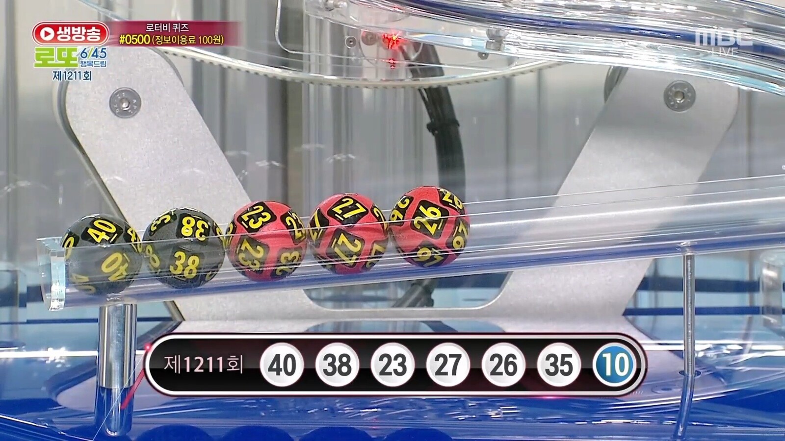 - 로또1211회 1등 당첨번호(6개): 23, 26, 27, 35, 38, 40