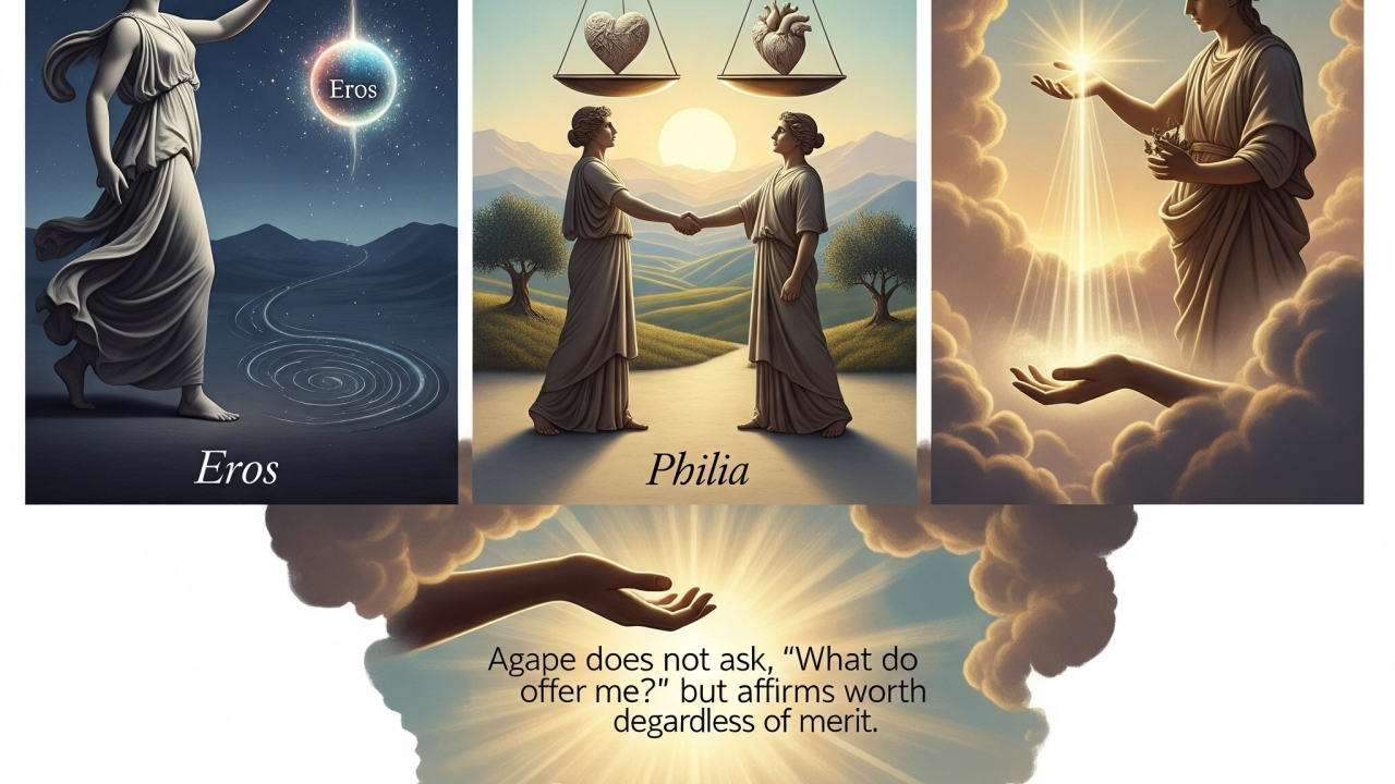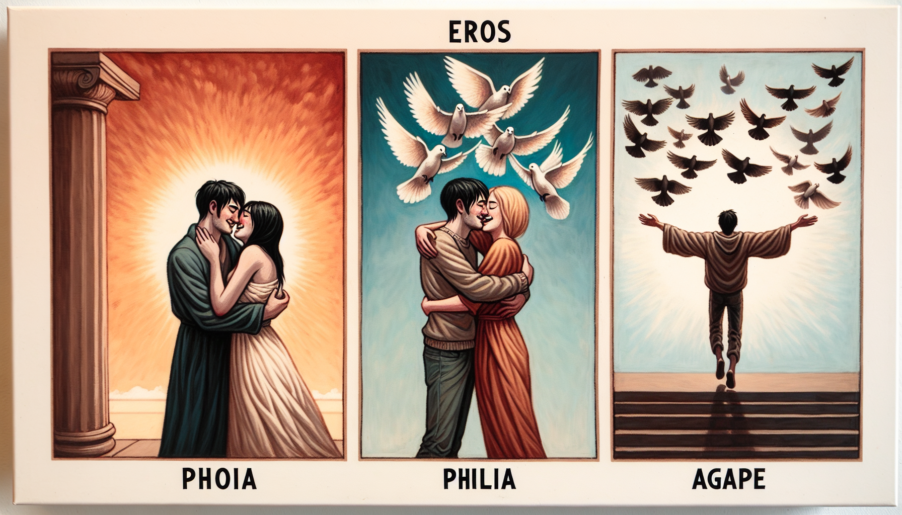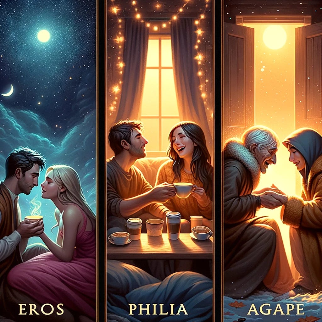 이 네 가지 사랑은 서로 완전히 분리된 개념이 아니라, 실제 인간관계에서는 복합적으로 나타나는 경우가 많습니다. 예를 들어 연애 관계는 에로스로 시작해 시간이 지나면서 필리아로 발전하고, 경우에 따라 아가페적 요소까지 포함될 수 있습니다.