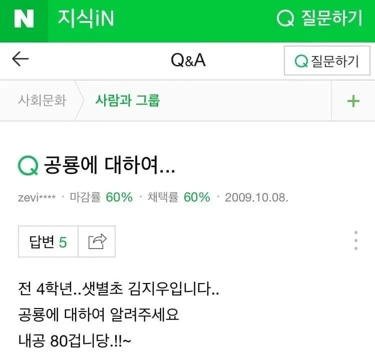 네이버 유명인 과거 지식인 답변 노출 사고