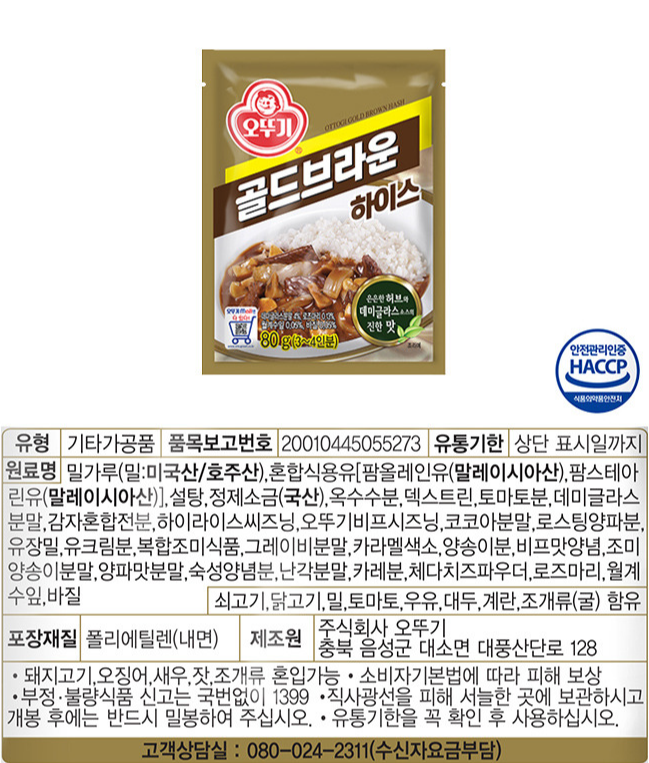 하이라이스 카레라이스 차이, 골드브라운하이스 가루 성분