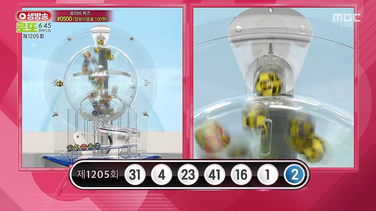 • 1205회 1등 번호: 1, 4, 16, 23, 31, 41