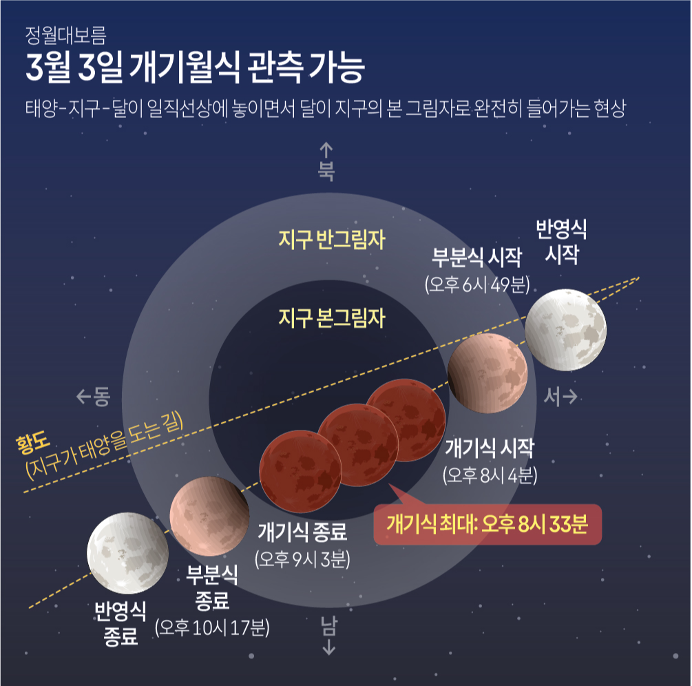 3월 3일 개기월식 시간: 정월대보름 저녁 8시